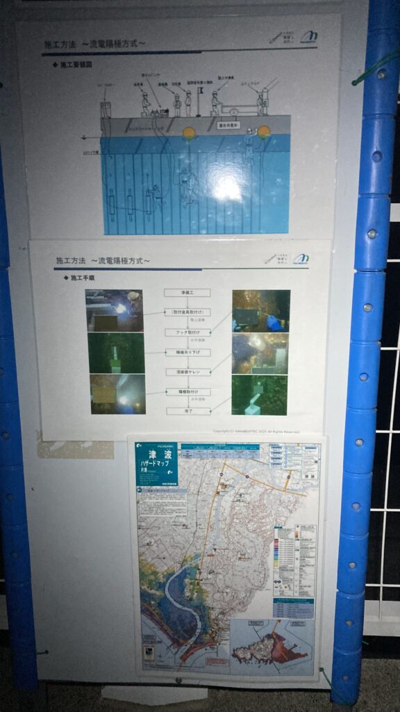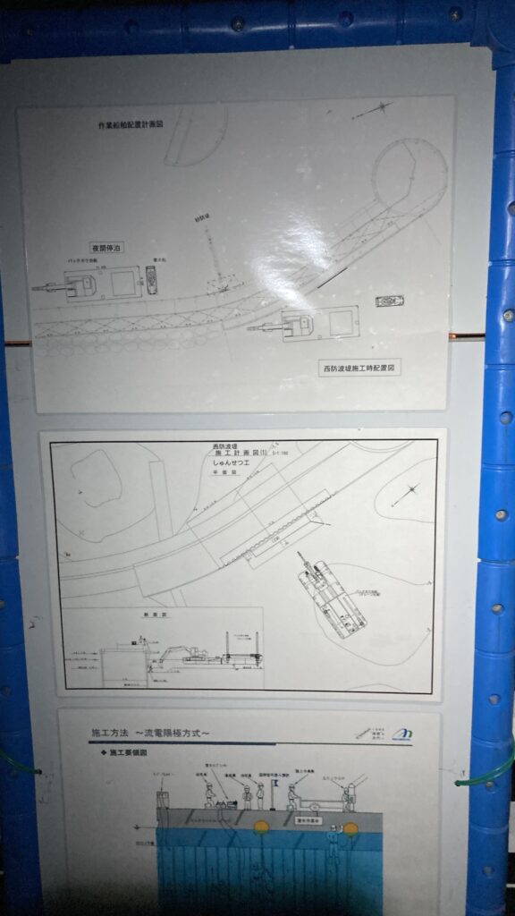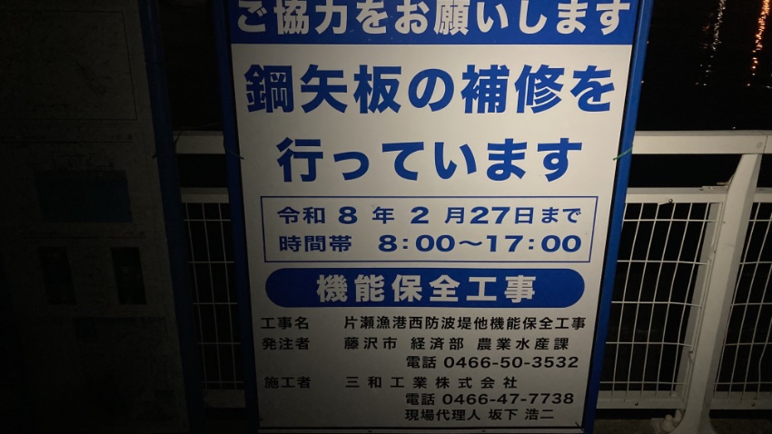 看板にあるとおり、2025年の11月中旬から2026年の2月27日まで、片瀬漁港で工事が行われる。