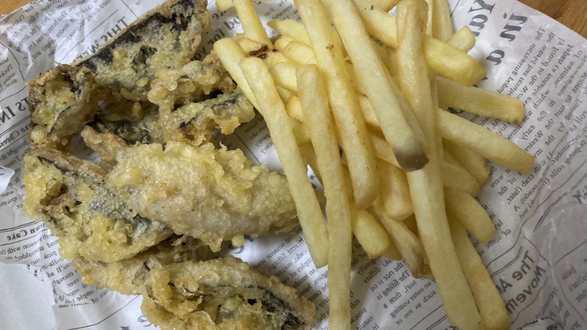フライドポテトを添えてフィッシュ&チップス。